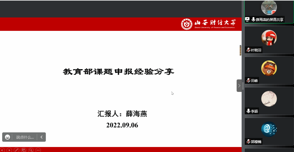 以线上会议的形式举行了第159次学术论坛,本次学术论坛由李颖教授主持,由薛海燕老师、王东升副教授分享教育部项目申报经验和成果。