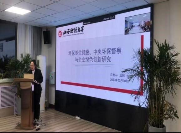 王钰硕士汇报了自己的工作论文,题目为《环保基金持股、中央环保督察与企业绿色创新研究》。