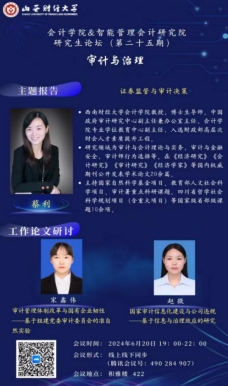 研究生论坛(第二十五期)成功举办。本次论坛由审计学教研室承办,论坛主题为“审计与治理”,特别邀请了西南财经大学污污漫画
