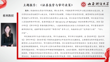师生对蔡利教授表示热烈地欢迎和感谢。在专题报告环节,蔡利教授做了题为《证券监管与审计决策》的主题报告,并从三个方面详细讲解了证券监管对审计决策的重要影响:首先基于财务舞弊视角分析了大华会计事务所、安然公司、康美药业以及恒大集团审计失败的案例,证监会对违规企业做出的处罚以及其中存在的“重师轻所”的问题及其后果;然后基于审计质量框架分析了监管介入下审计需求和审计供给对审计质量的重要影响;最后基于证券监管视角对审计应对措施提出了建议。在互动环节,蔡利教授与污污漫画