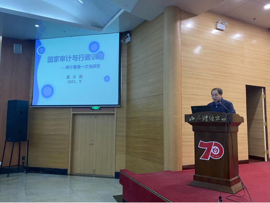 学术报告在我校立信报告厅举行。董大胜研究员连续作了“新中国审计法制的演进及思考”和“国家审计与行政诉讼——审计署第一次当被告”两场学术报告。第一场报告会上,他从宪法、审计法和国务院颁布的审计行政法规及其他规范性文件三个层次,按照时间先后脉络,详细梳理了新中国成立以来审计法制的演进过程以及具体的内容修改,并向对大家分享了有关审计法制在不断演进中的几点思考。第二场报告会上,董大胜介绍了行政诉讼法有关被审计机关的相关内容,通过一项真实案例详细介绍,详细生动地说明了审计机关应对行政诉讼的具体实践,并在最后分享了他对审计机关应对行政诉讼的思考与看法。