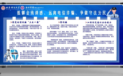 通过多种形式积极宣传防范电信诈骗的重要性,有效提醒了学生们既要加强自我保护意识,降低被诈骗的可能性,也要彻底扼杀参与诈骗活动的思想萌芽,鼓励学生们自觉参与到防诈、拒诈的工作中来,树立正确的价值观,成长为向上、自律、守法、有担当的时代新人,为维护良好的网络风气贡献会院学子的青春力量。
