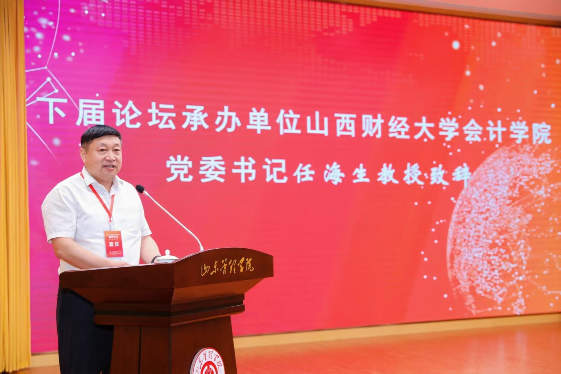 党委书记任海生代表“2026第二十一届中国资产评估教育论坛”承办单位接过承办旗帜。任海生书记在接旗致辞中表示,要努力做到优化会议流程,拓宽合作渠道,强化成果转化,提升服务质量,致力于打造一个更加高效、专业、广泛的学术交流平台。