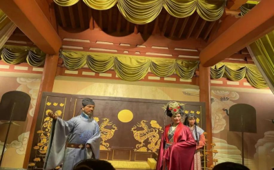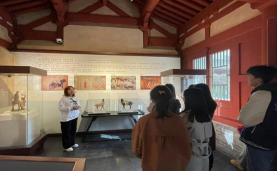 之后讲解员又带领师生们参观了狄公故居,其位于镜池的东侧,主要展示狄仁杰传说故事以及大唐时期民风民俗。还在狄公故居的后殿通过全息投影屏观看了大唐盛世、太原在唐朝的地位、狄仁杰的一生等内容。