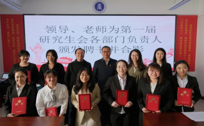 最后,参会老师为研究生会干部颁发聘书并合影留念。
